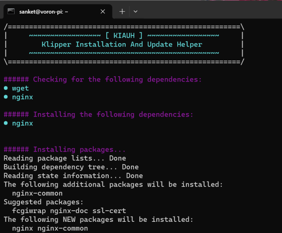 after klipper install we will now install moonraker which is the klipper api using kiauh