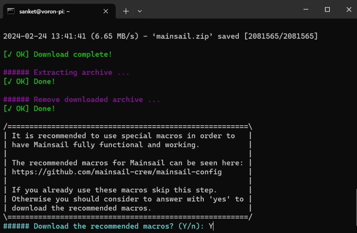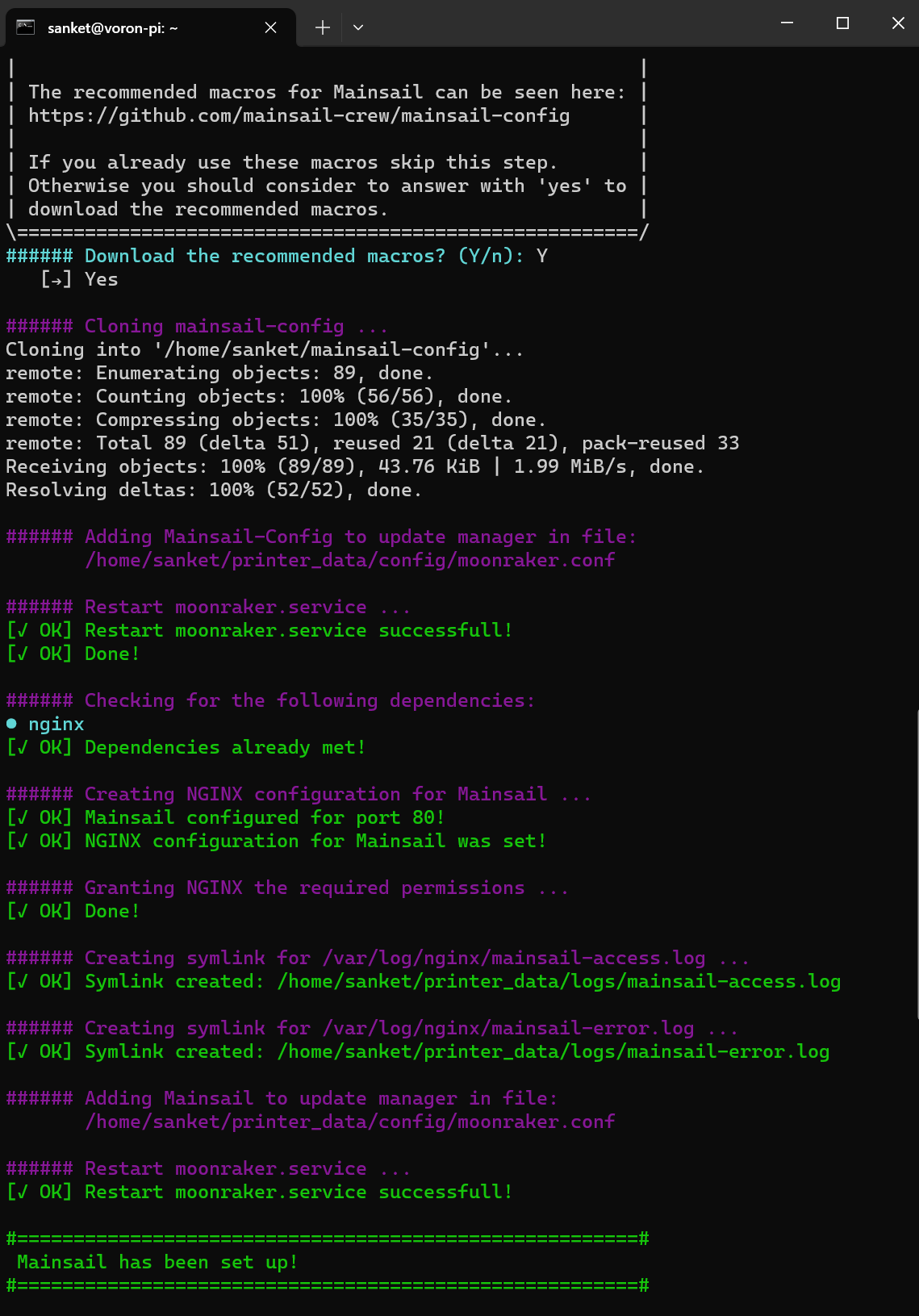 you can come back to main kiauh screen and check that mainsail now shows installed.